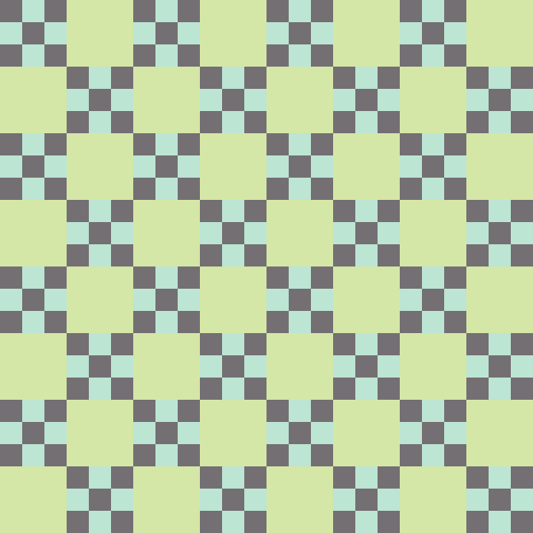 And tile it. See how we get a strong diagonal line? This is because the gray has a strong contrast with the green and blue. If we use the blue on the diagonal, we don’t get that bold, diagonal movement.