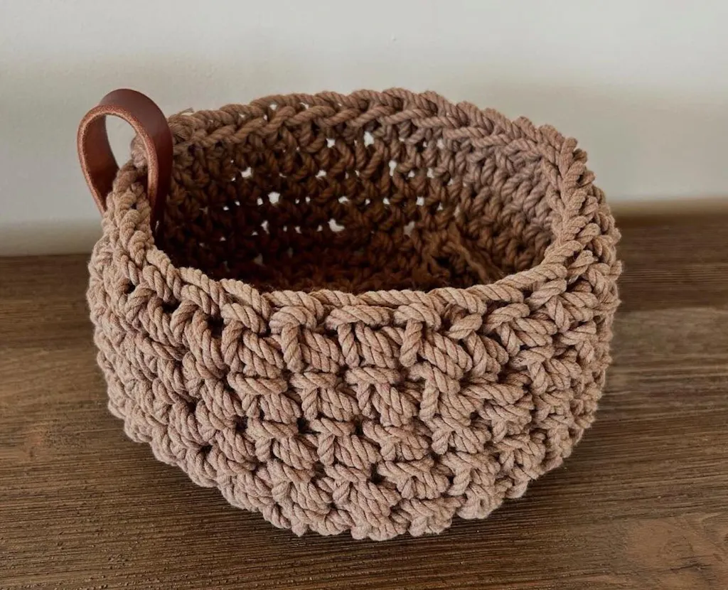 Change up the typical crochet basket with Brenn, our fabulous 5mm recycled cotton rope and a little leather side handle for a modern and clean look. The natural texture and reflective nature of the rope, plus it's sturdy structure, make this the perfect basket for any and everything! Make it up quickly in a couple of hours, full pattern video and instruction includes tips on how to make it even bigger!