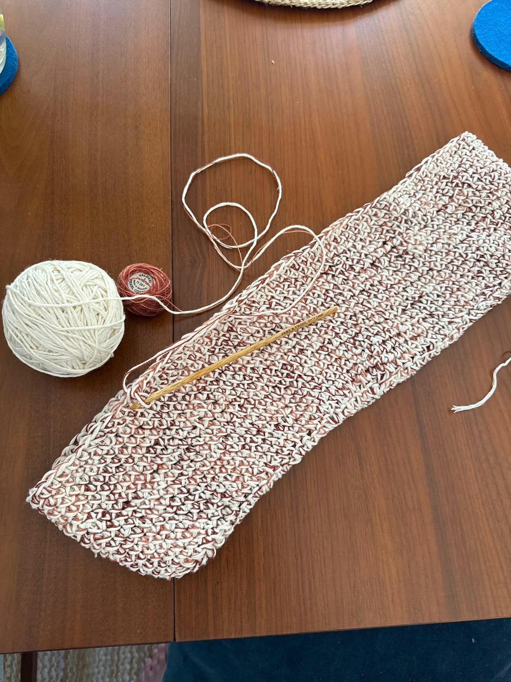 Functional and beautiful, you can't go wrong with crocheting our beautiful Roman Café Bag. It is sleek and just the right size to carry your computer, notebook and phone to the coffee shop to get a little work done in style. It's easy to make with single crochet spiraled around and around so there are no seams! It does have a thin 1" wide bottom, and of course the kit comes with a video so Anne can walk you through every step. Combining Flax & Twine DK Daytime Linen with Valdani Embroidery thread serves up a unique yet stunning variegation in your bag that is sure to grab everyone's attention! We love the cute little interior pocket as well as the leather straps. Seriously, this is my go-to work bag!