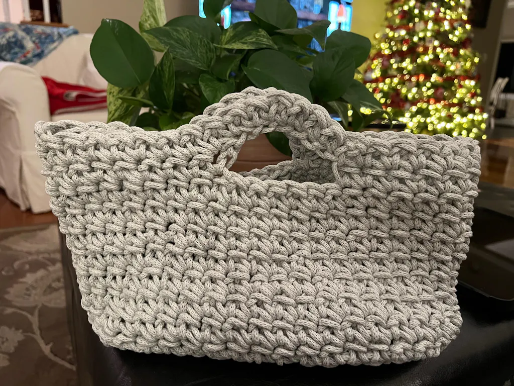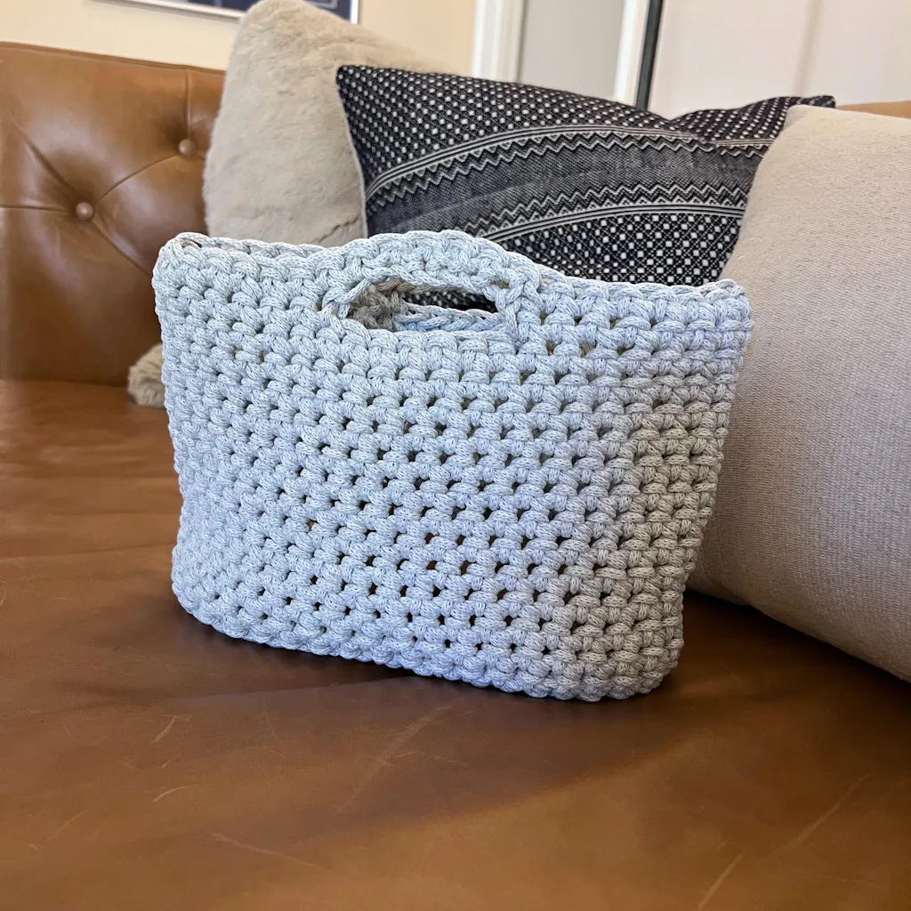 We love this little mini crochet handbag with fabulous Flax & Twine 4mm Astrid Braided Cotton Rope. This easy crochet pattern pulls together in such a short time to create the cutest little handbag or carry-along or mini-basket. Carry in your hand or under your arm like a clutch, put it in your shelf to hold your favorite tid-bits, or carry your latest project. This sweet size is perfect for your phone and all your essentials. We love the texture and the simplicity, yet it looks so interesting! We've sized it in small medium and large so you can adjust it to your frame or what you want to hold. I promise you're going to want one in every color!